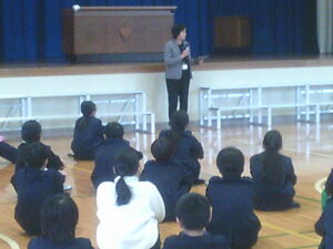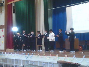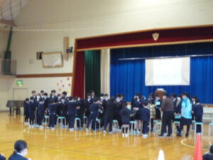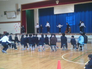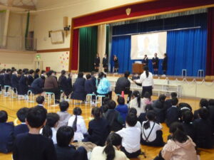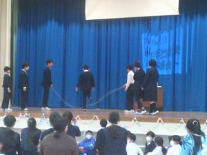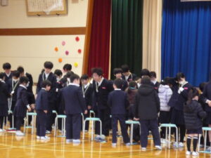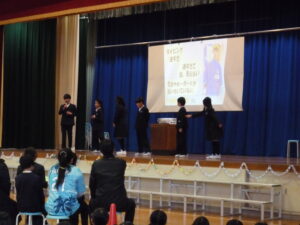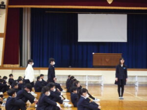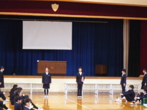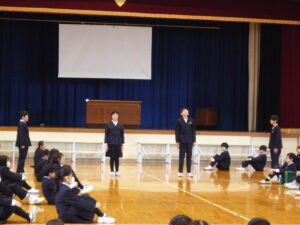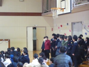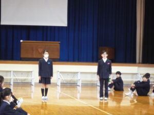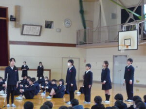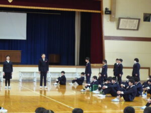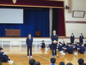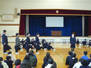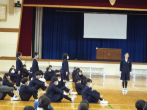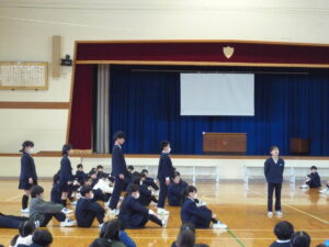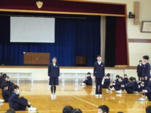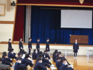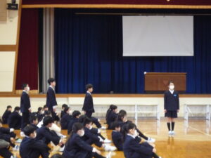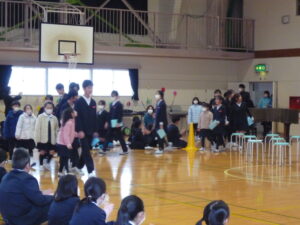 ゲームの後、卒業される6年生への感謝やお祝いのメッセージや、6年生からの温かい言葉や今後の決意の言葉がありました。
