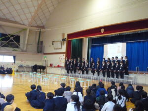 今日は在校生で卒業を祝う会の歌練習がありました。