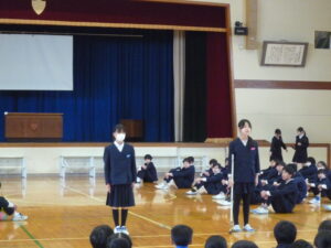 昼休みに引継ぎ式がおこなわれました。