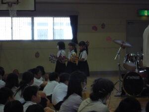 歓迎の言葉と「輝く未来」の合奏を発表しました。