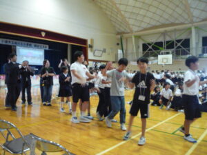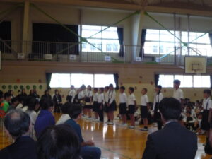 坂の上小学校のみなさんから、坂の上小学校についての発表やどかんしょ祭りの踊りの発表がありました。