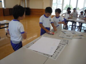 「にじいろにしよう!」「絵も描きたいね!」と話をしながらつくっていました!