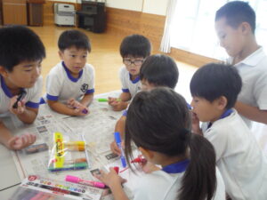 今日はみんなが「楽しそう!」と思うような看板をつくりました。