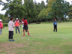 10日(金)の午後は、坂の上小学校の6年生と一緒に東福寺野自然公園でパークゴルフを行いました。パークゴルフ協会の方々が、丁寧に指導してくださり、みるみるうちに上手になりました。「3回で入った」「ナイス」「惜しい」と声をかけ合い、楽しみました。