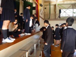 朝の時間をつかって6年生が学習発表会に向けてひな壇の準備をしてくれました。