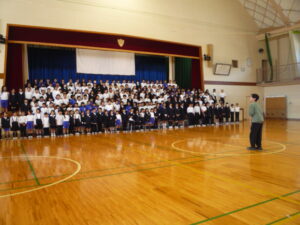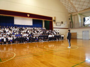 子供たちは先生に負けないように大きな声で声出しをしていました。