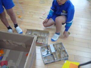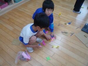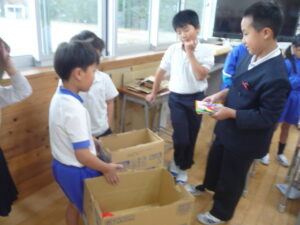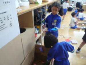 2年生が保育園交流に向けてお店屋さんの準備をしています。