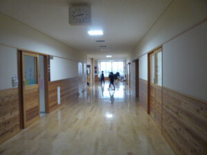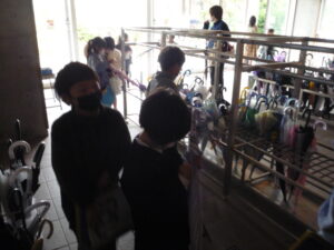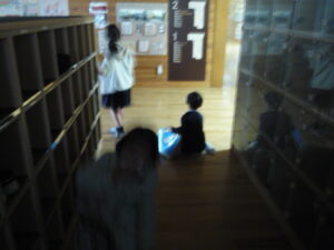 1年生が図書館から帰ってきました。この頃はまだ雨が降っていました。