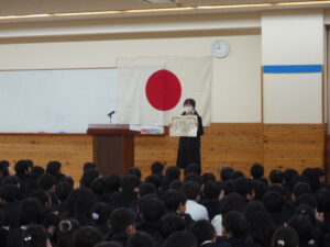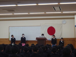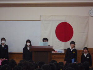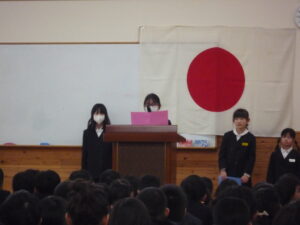 代表の5人の子供たちが2学期にがんばったこと、3学期にがんばりたいことをお話してくれました。田中っこみんなが2学期にがんばったこと、3学期にがんばりたいことがあると思います。また3学期の目標に向けてがんばっていきましょう。
