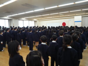 終業式は一人一人が成長を見つめる日です。できるようになったこと、がんばり続けること、友達との関わり、次に生かせそうなことを振り返り、次の一歩につなげていってほしいです。また、振り返って苦手だと思ったことも次に成長する証なので大切にしてほしいです。