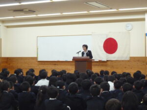 始業式では、校長先生のお話がありました。