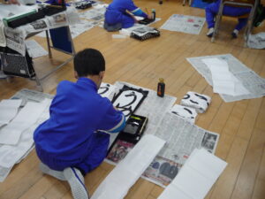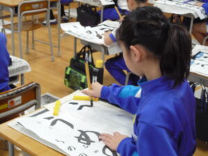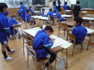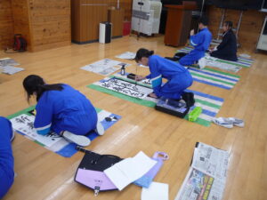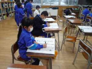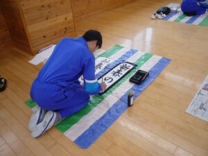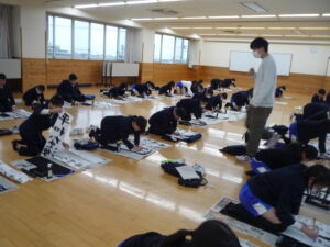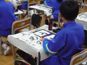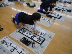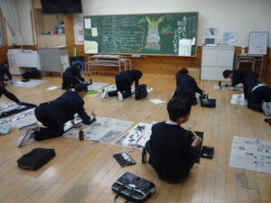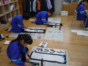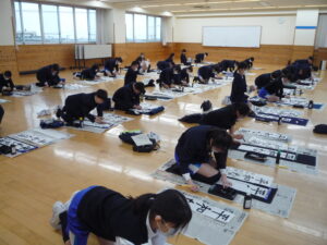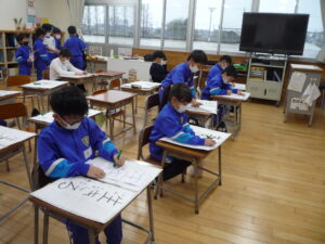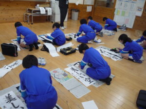 6年生「新春の志」小学校生活最後の書き初め大会。心をこめて、丁寧に書き上げました。
