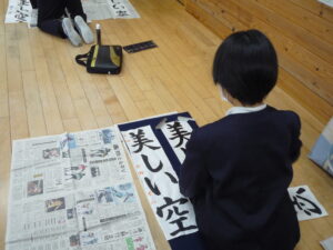 4年生「美しい空」バランスが難しいですがのびのびと書きました。