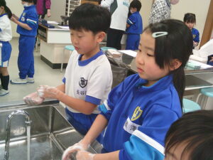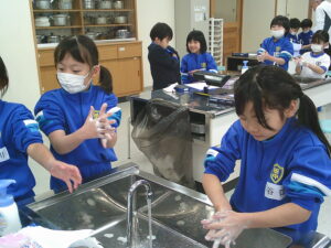 これからも、運動や掃除の後、食事の前など、しっかりと手洗いを行い、手洗い習慣を身に付けてほしいと思います。マイスターの先生方、ありがとうございました。