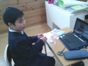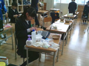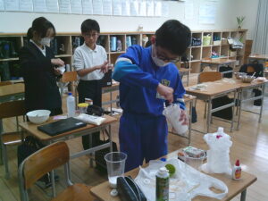 科学の時間に、スライムやスーパーボールづくりなど、興味を持ったことについて調べ、一人一人が試しの実験を行っていました。タブレットで情報を集めながら、試行錯誤の連続。どのような結論を導き出してくれるのか、とても楽しみです。