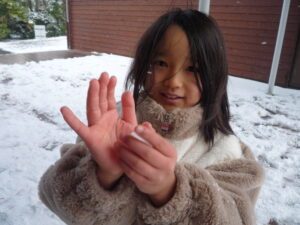 小さく丸めてすごく固い雪玉を見せてくれる子もいました。