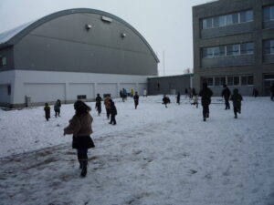 大雪になると予報がありましたが、田中小学校はちょうどよい積雪で子供たちは大はしゃぎです。