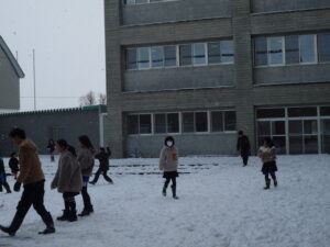 学年混じって雪合戦をしています。
