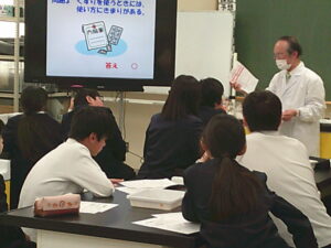 学校薬剤師の方を招いて、薬物乱用教室を行いました。