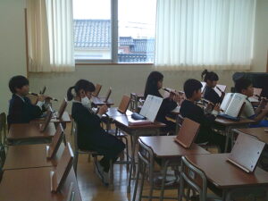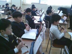 音楽の時間、リコーダー練習をしていました。