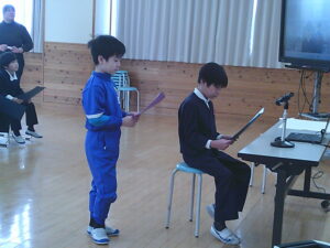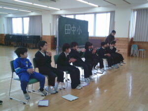 ゲームの後、卒業される6年生への感謝やお祝いのメッセージや、6年生からの温かい言葉や今後の決意の言葉がありました。