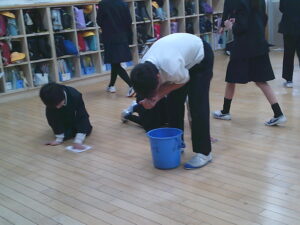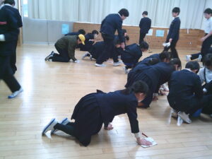 今日は、教室の床をピカピカにしました。1年間お世話になった教室を、丁寧に雑巾で磨きました。6年生は、もうすぐ卒業式。心をこめて拭いていました。