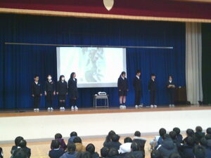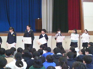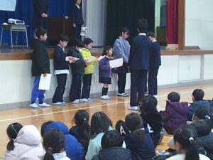 なかよしタイムにキラキラ集会を行いました。新年作品やタイピング大会の受賞伝達の後、図書委員会や放送委員会の発表がありました。