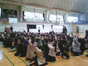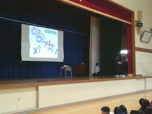 放送委員会は、放送に関するクイズや旧校舎等の〇✕クイズを出し、全校のみんなに楽しんでもらいながら、話をしっかり聞いて活動することの大切さを広めていました。