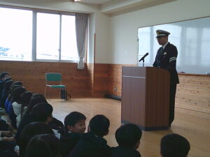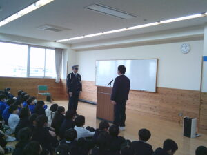 また、子供たちが危ないことをしていたり、通報があった場合には保護者の方と警察に来てもらい話を聞いたりすることになると説明されました。自転車のルールが令和7年9月から変更になったこと、みんなの命を守るためであることも話をされました。