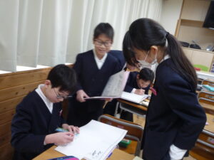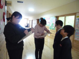 子供たちはもらった卒業アルバムにメッセージを書き合っています!