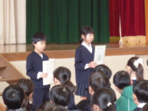 修了式の前に受賞紹介がありました。 とてもうれしそうな様子でした。
