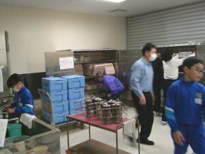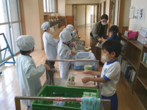 学校の中で忙しい委員会と言えば…給食委員会です。テキパキ働いていました。