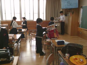 3年生も金曜日は5時間で終わりです。忙しそうに連絡帳を書いたり(ありがたいことに私の誕生日を祝ってくれたり)帰りの準備をしたりしていました。